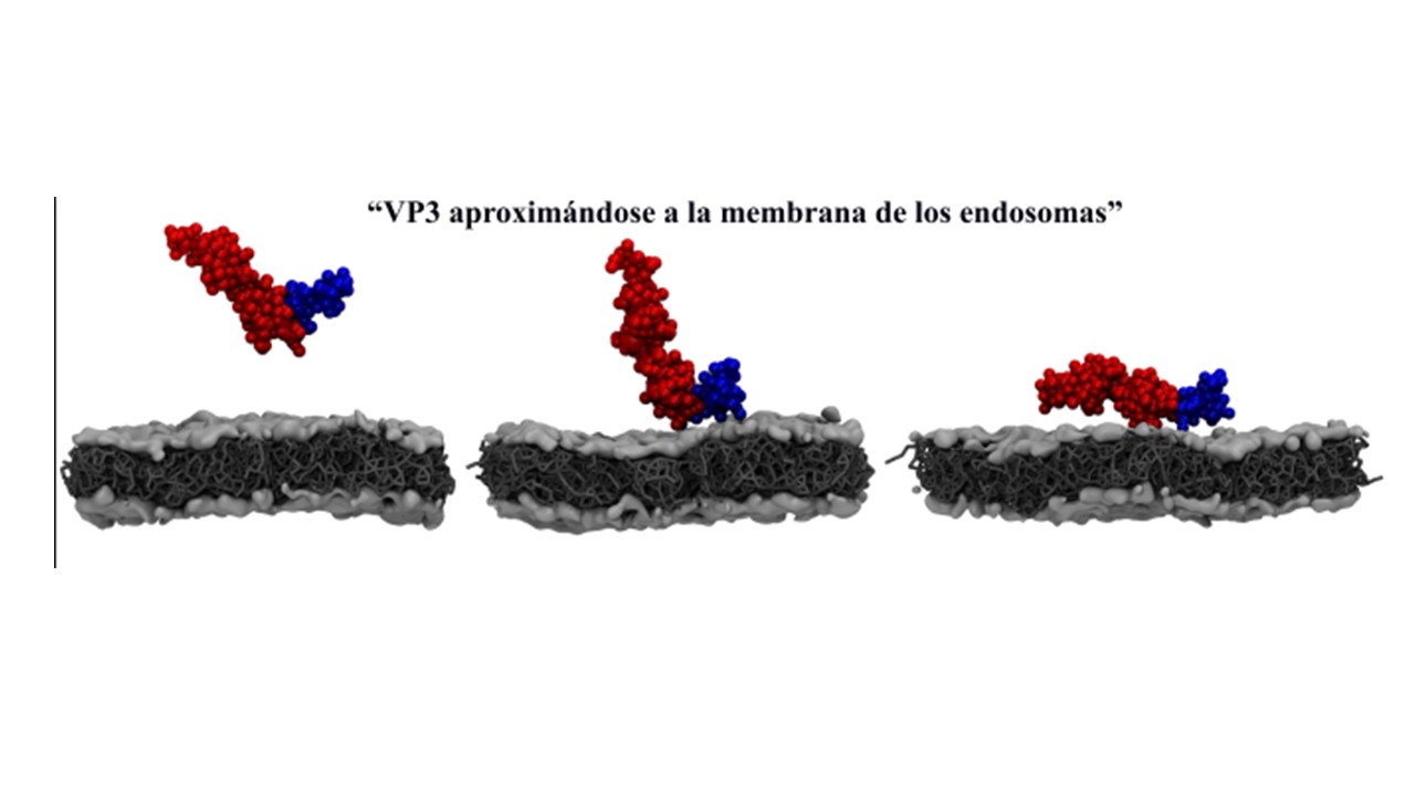 En esta investigación, el grupo de trabajo estudió cómo este virus consigue secuestrar unas vesículas de las células, llamadas endosomas tempranos, que funcionan como plataformas internas donde los virus se multiplican. Descubrieron que una proteína del virus, llamada VP3, se una molécula que se encuentra en la membrana de estos endosomas. Esta molécula se llama PI3P.