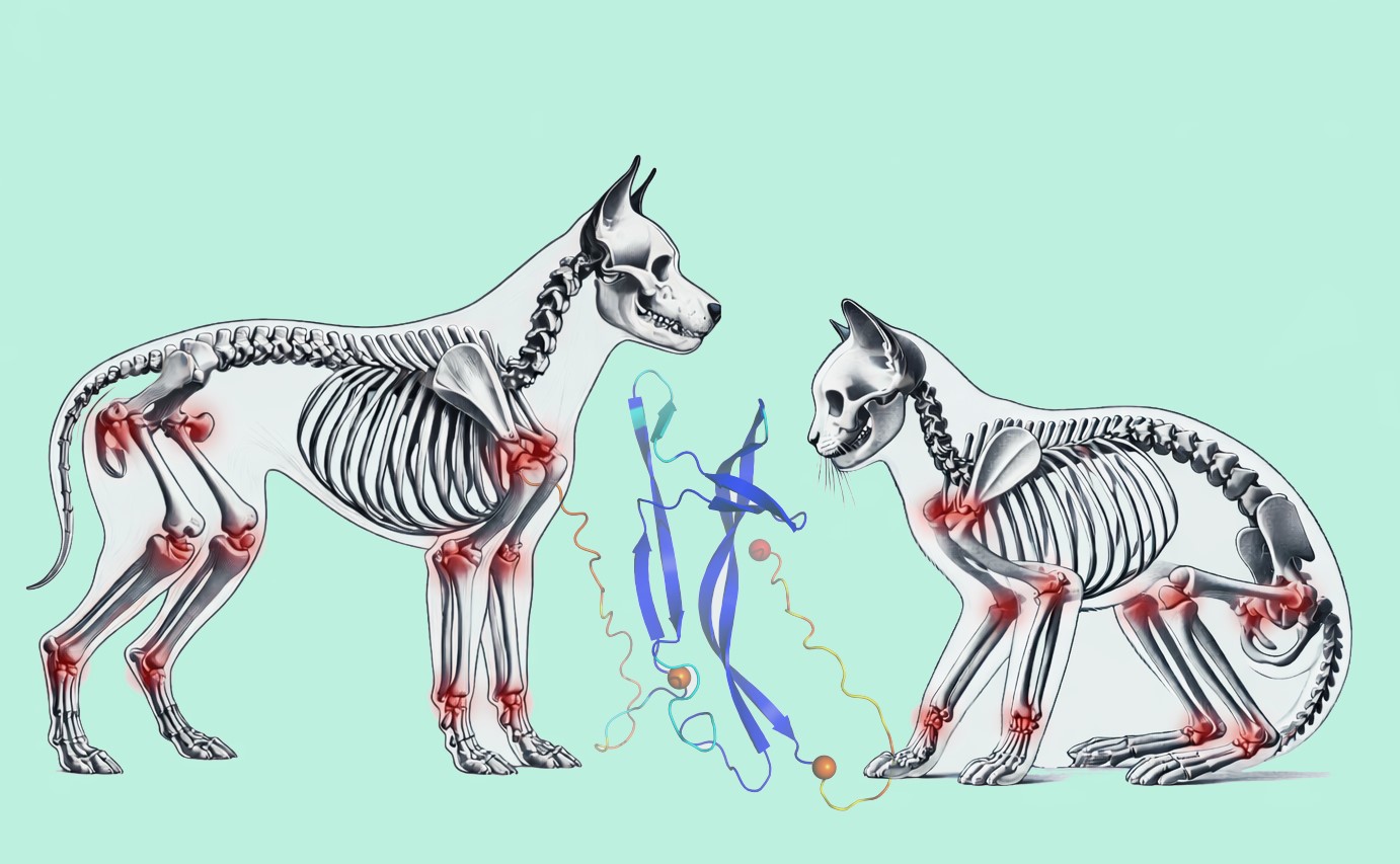 La enfermedad articular degenerativa, también conocida como artrosis (OA, por sus siglas en inglés), es una de las principales causas de dolor crónico en perros, gatos y también en humanos. En los últimos años, se han aprobado anticuerpos monoclonales dirigidos contra el factor de crecimiento nervioso (NGF) para tratar el dolor artrítico en animales. Sin embargo, estos tratamientos presentan algunas limitaciones: su alto costo y la necesidad de aplicaciones periódicas.